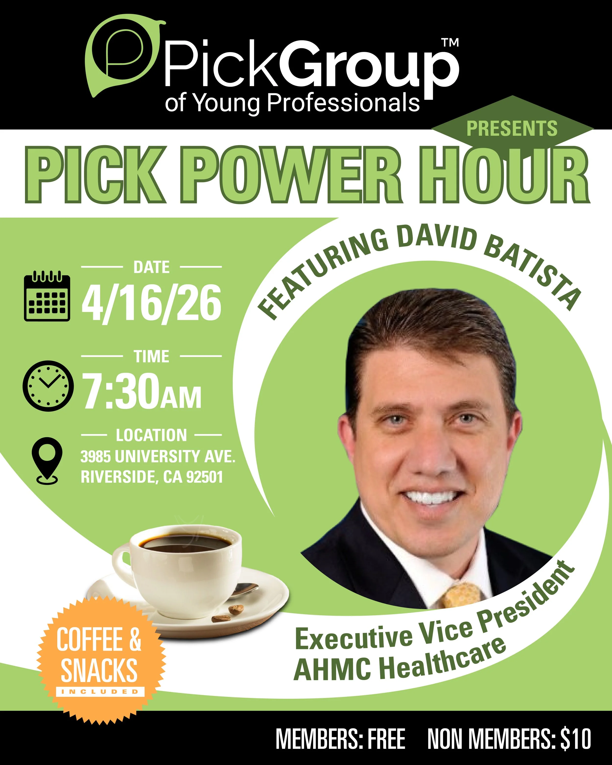 Fuel your morning with high-level insights and local connections at the next Pick Group Power Hour. We’re bringing together Riverside’s rising talent for an hour of impactful mentorship and professional growth.